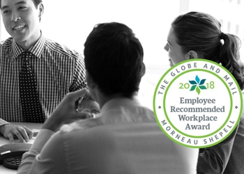 The Globe & Mail and Morneau Shepell have partnered to create the Employee Recommended Workplace Award. This award is based on employee evaluations of "the Total Health of a workforce -- physical, mental, work, and life." Companies with a Canadian staff of 25 or more employees can participate through an application process and then have employees complete an online survey.